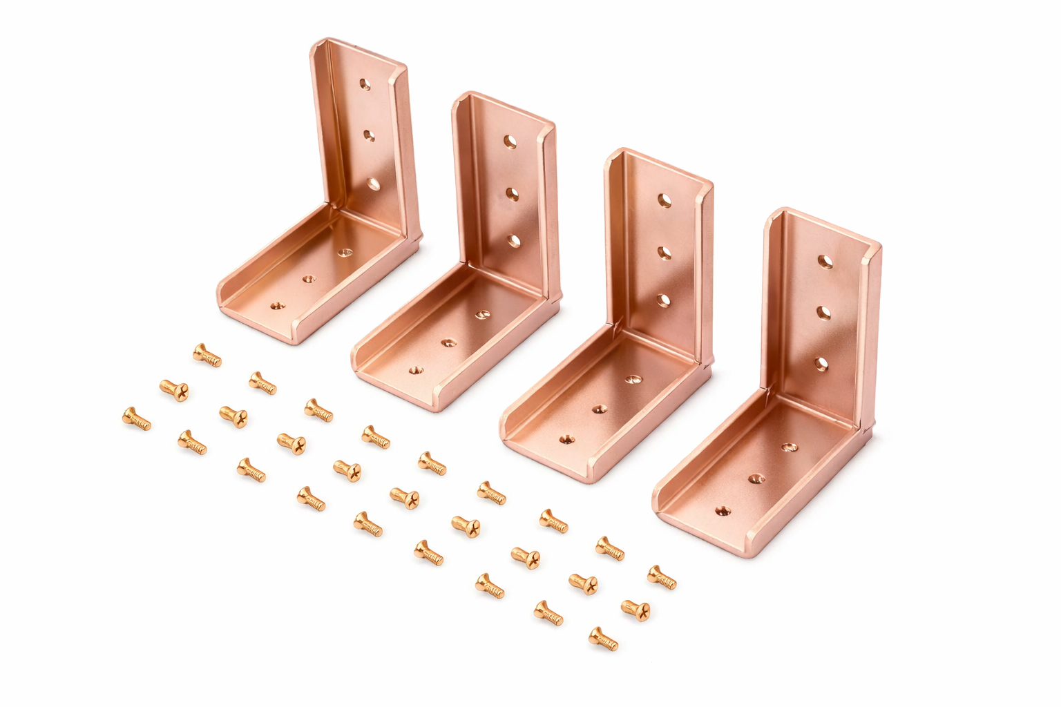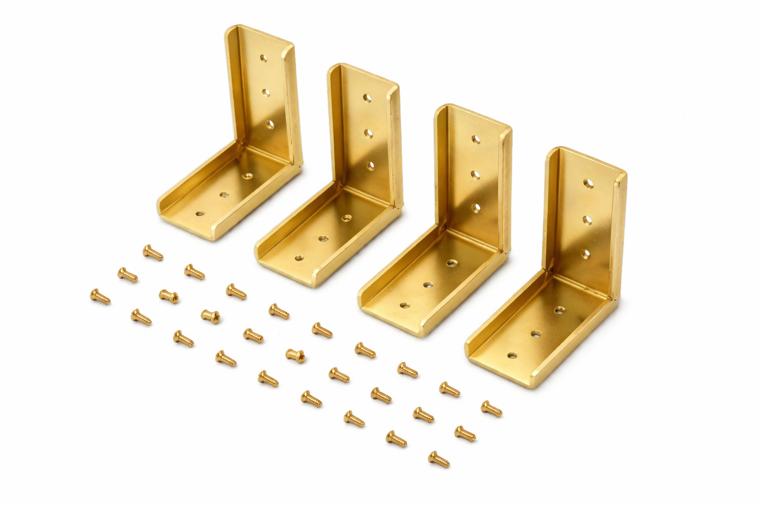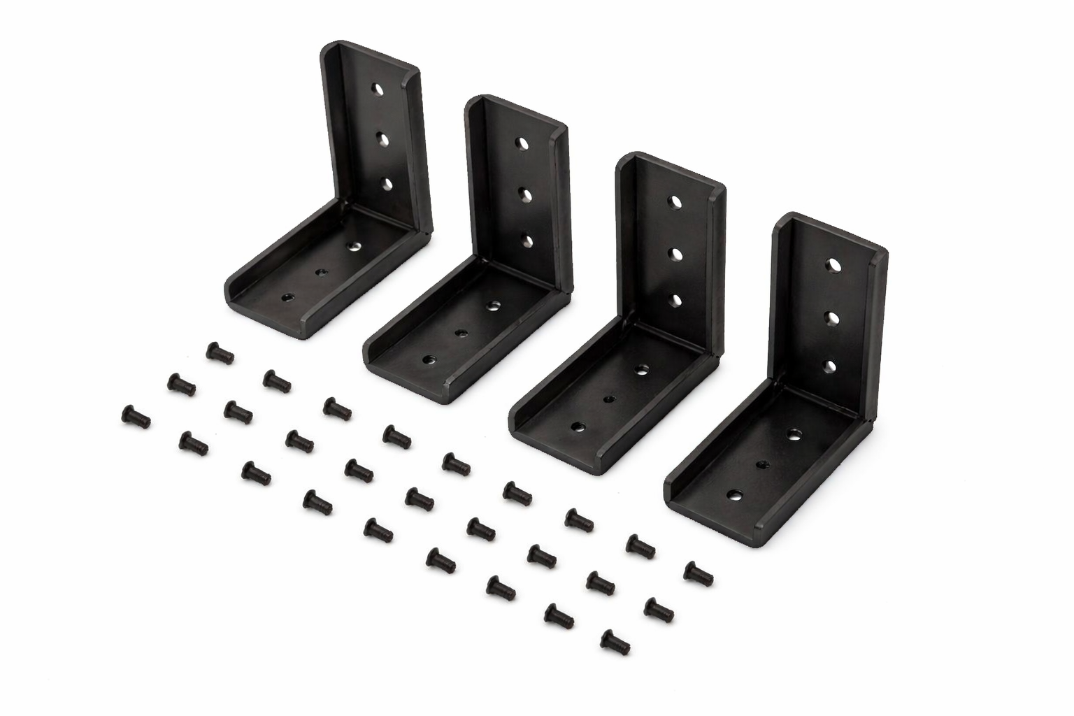 Included Hardware: A selection of matching screws/bolts is included to secure the brackets into wood, metal, or other materials.
