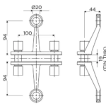 - 2 Way Arm Spider fitting. (180 Deg)